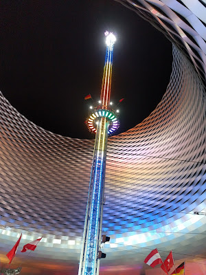 Der Abend endet mit einem letzten Blick auf die Kirmes. Mein Mann wollte gern in diesen Freefalltower einsteigen aber das Runzelfüßchen hat es ihm weinend verboten. Sie meinte, sie würde ihren Papa sonst zu sehr vermissen. Ich konnte förmlich sehen wie mein Mann kurz über dem Boden schwebte, ob dieser Aussage.