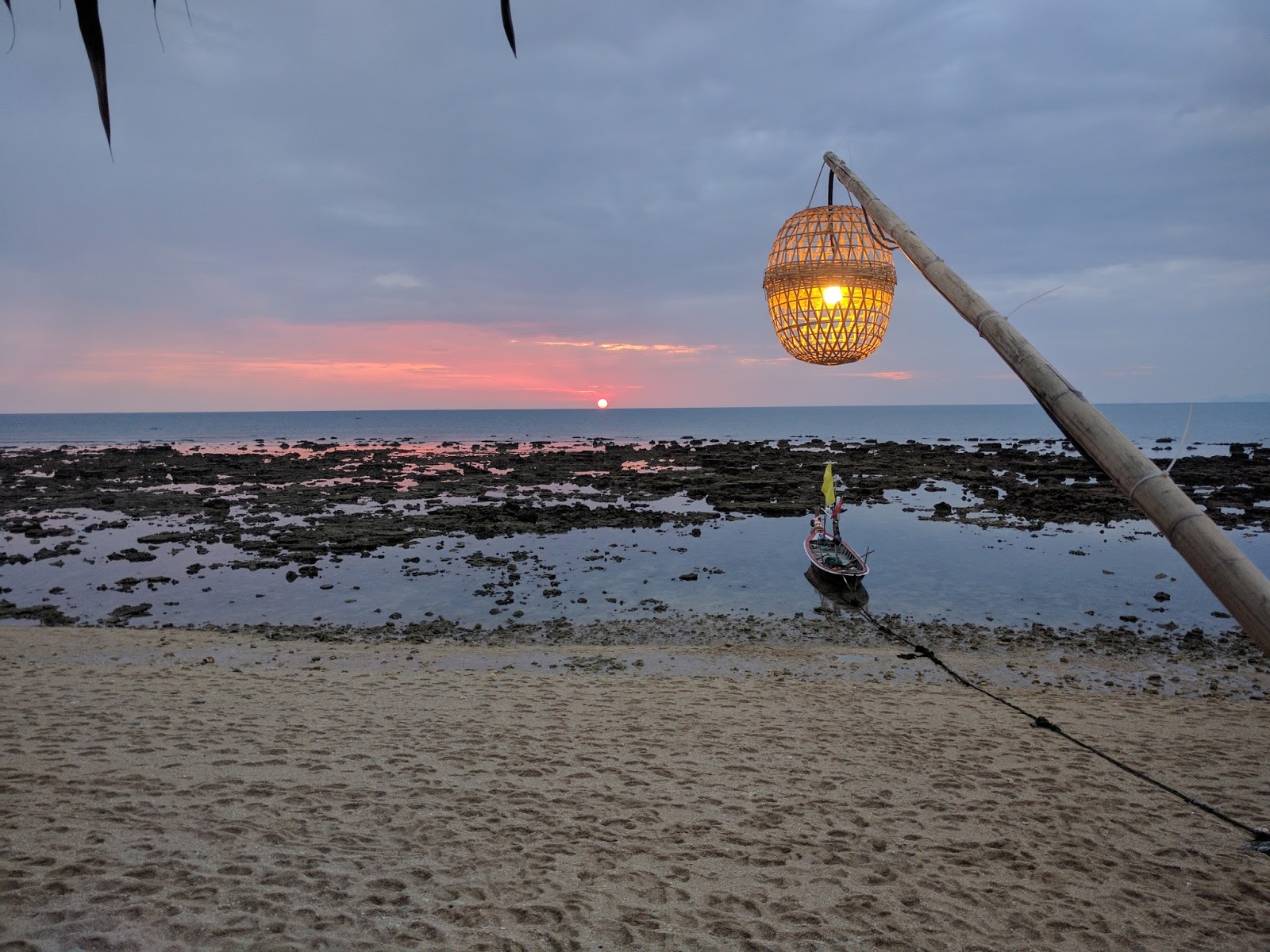 Ich möchte den Sonnenuntergang anschauen und das Runzelfüßchen kommt bereitwillig mit. Sie buddelt im Sand und verschwindet immer mal wieder. Ich lasse sie gewähren, denn sie weiß, dass sie nicht in die Nähe vom Meer darf (was aber wegen Ebbe auch recht weit weg ist) und es sind lauter Thais um sie, die genau aufpassen was sie macht. Ich beobachte wie sie unter dem neuen Vertrauen, das wir ihr schenken aufblüht und es genießt „die Große“ zu sein, die Sachen auch allein machen darf.