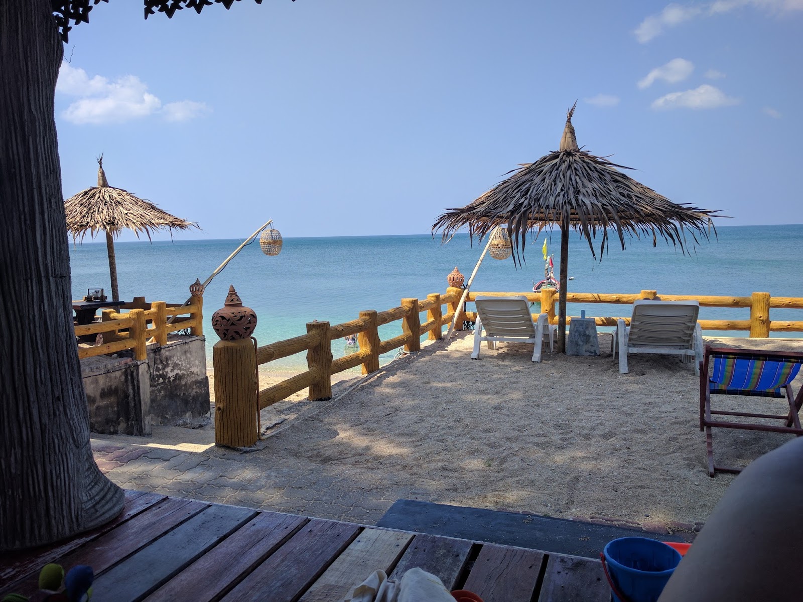 Endlich in unserer Unterkunft angekommen. Es hat alles geklappt. Und ich bin mal wieder beeindruckt von der Kinderfreundlichkeit der Thais. Im größten Trubel, die Koffer wurden von der Fähre geladen und 100 Leute schrieen und schoben durch die Gegend, bleiben zwei Thais von der Fährgesellschaft stehen und unterbrechen ihre Arbeiten, weil sie meiner Tochter die Tasche zurechtrücken wollen. Das Runzelfüßchen hat natürlich auch eine Tasche dabei, und die war in den Augen der Männer zu lang. Also knieten sie sich hin und zogen sie fester um meine Tochter, schenkten ihr ein Lächeln und luden weiter Koffer aus. Irgendwie undenkbar in Deutschland. Und es macht mich SO glücklich.