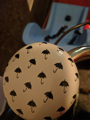 Das Runzelfüßchen bewundert noch mal die Klingel, die sie sich für unser Fahrrad ausgesucht hat. Ich hoffe einfach, dass das kein Ohmen für die nächsten Wochen ist. Davon abgesehen ist sie aber wirklich hübsch!