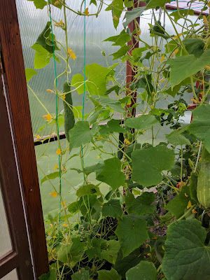 Nach der Arbeit fahren wir ins Grüne und bewundern die riesigen Gurken. Vor vielen Wochen waren das kleine Pflänzchen, die wir zuhause mit solch einem Anzuchtset hochzogen. Jetzt sind es große Gurkenpflanzen die reichlich Gemüse tragen. Das Runzelfüßchen ist mächtig beeindruckt, und wenn ich ehrlich bin: Ich bin es auch! Natur ist schon was Erstaunliches!