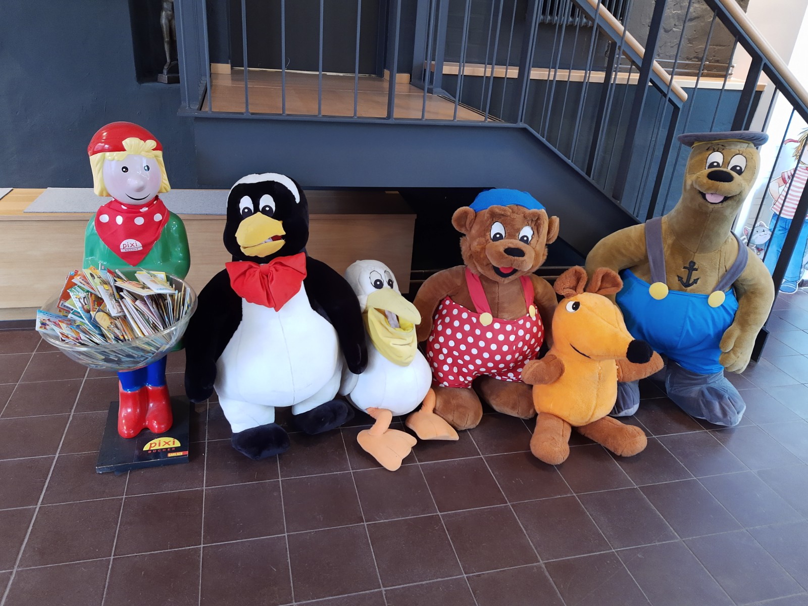Und dann ging es zum Verlag. Was waren die Kinder aufgeregt. Schon in der Eingangshalle konnten sie es kaum erwarten Petzi, Pixi und Co zu kuscheln. Wir bekamen eine Führung durchs Haus (die hatten wir damals ja verpasst) und die Kinder konnten sich nicht satt sehen. Besonders als unsere Begleitung den Kindern erlaubte sich ein Pixibuch aus dem Aufsteller auszusuchen war das Runzelfüßchen in arger Not. Für welches Heft sollte sie sich nur entscheiden? (Muss ich erwähnen, dass sie für die Zugfahrt schon 10 von ihren Pixibüchern eingepackt hatte?)