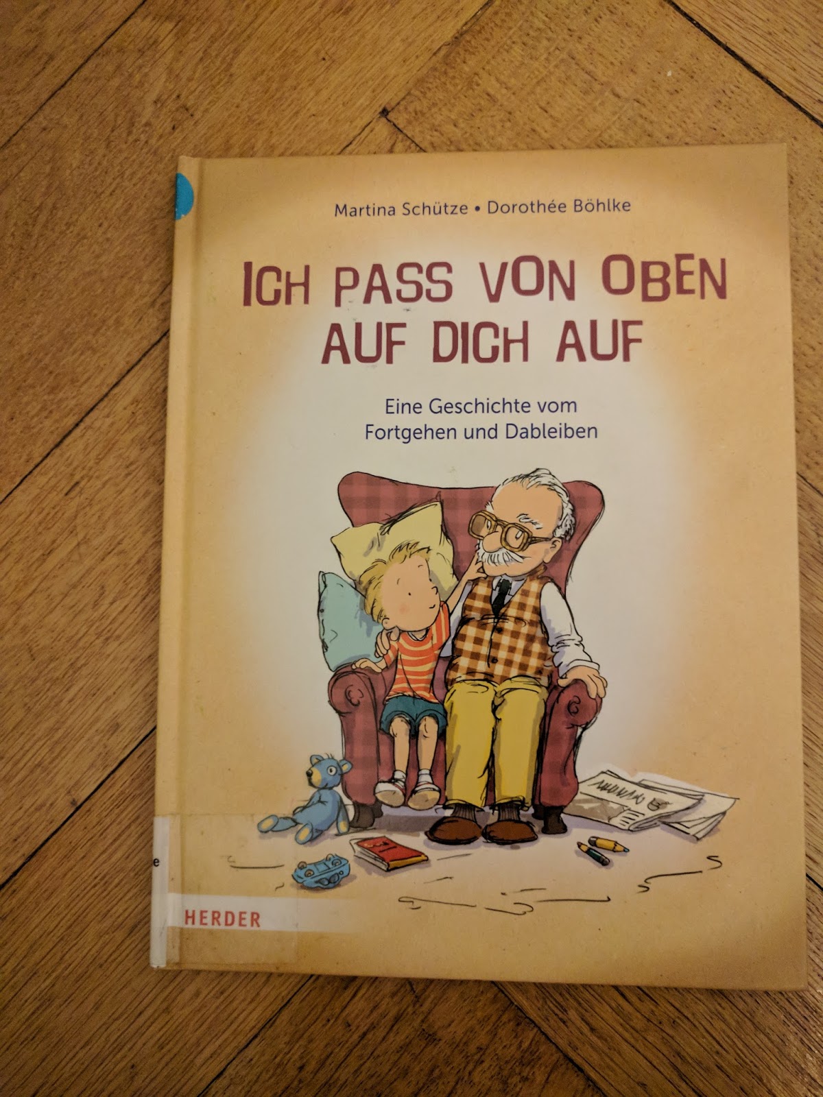 Für Kinder ab 3 Jahren erklärt „Ich pass von oben auf dich auf“ die Krankheit Krebs kindgerecht. Das Runzelfüßchen musste bei dem dazugehörigen Bild sehr lachen, was ich schön fand. Überhaupt, auch hier lockern die Bilder das Thema sehr auf. Was mich stört, aber das Runzelfüßchen gar nicht, ist das Happy End. Der Opa stirbt und ganz kurz sind alles traurig. Dann aber bekommt der Junge einen neuen Bruder, der einen Namen bekommt, der dem des Opas ähnelt. Klar, der Lebenszyklus ist genauso, aber ich fand das ein bißchen sehr dick aufgetragen. Nur: Am Ende muss es ja gar nicht mir gefallen, sondern dem Kind. Und die mochte speziell dieses Buch einfach sehr sehr gern.