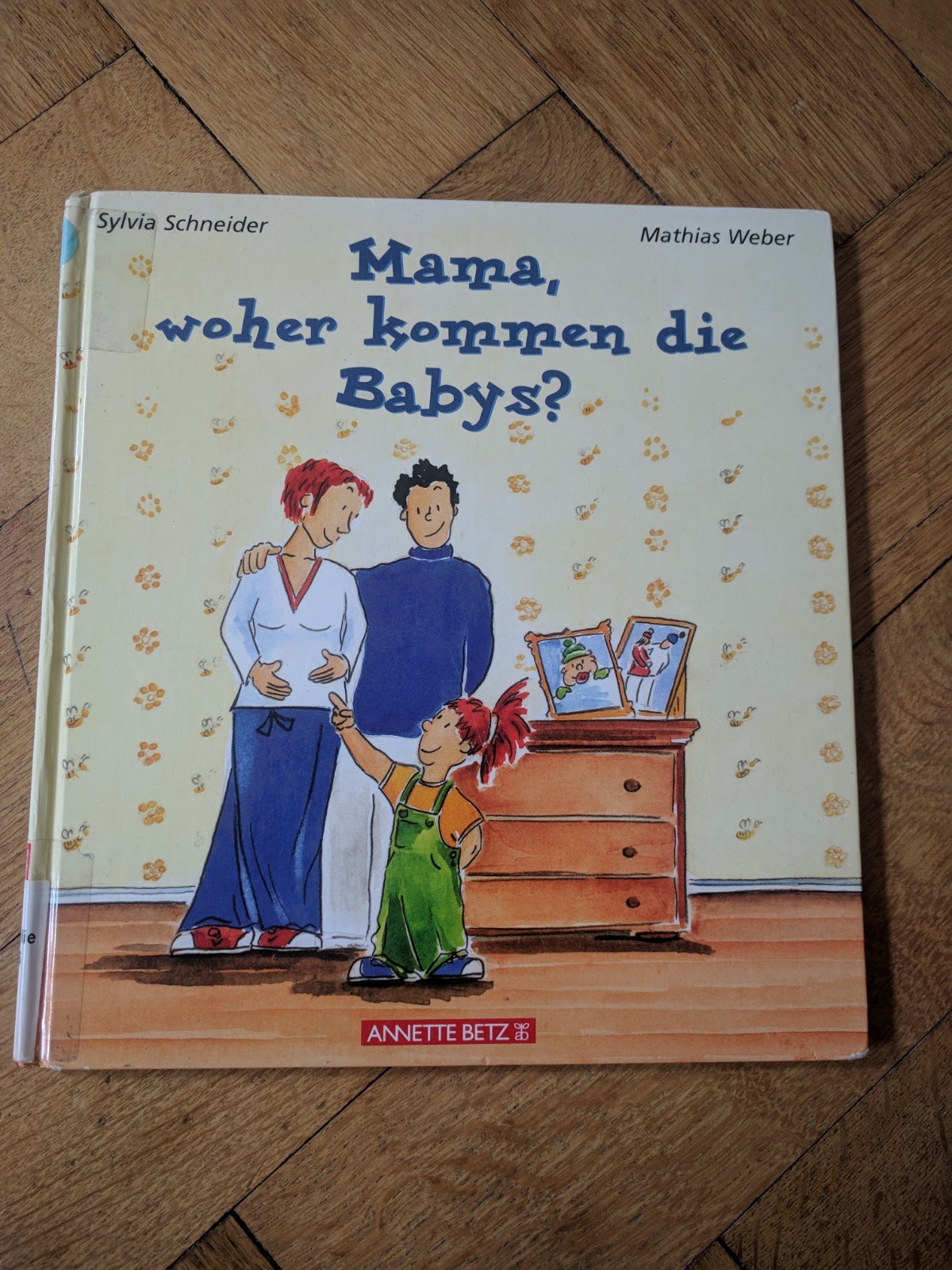 Lustigerweise gefällt den Kinder da die Haptik nicht. Die Buchseiten sind aus irgendeinem beschichteten, glatten Papier, was meine Kinder nicht gern anfassen. Auch die Bilder haben ihnen nicht so gut gefallen, es ist tatsächlich das Buch, dass sie von allen am wenigsten beachten. Ich persönlich fand vor allem irritierend, dass bei der Darstellung der Geburt die Frau auf dem Rücken liegt, die Beine in diesen Gynäkologiestuhlbeinen und alle, außer der Mutter einen Mundschutz aufhaben. In dem Bild ist zwar auch der Vater dabei, aber alle tragen auch einen Haarschutz, was das ganze schon sehr klinisch macht. Das Buch ist von 2006, ich würde es eher nicht empfehlen.