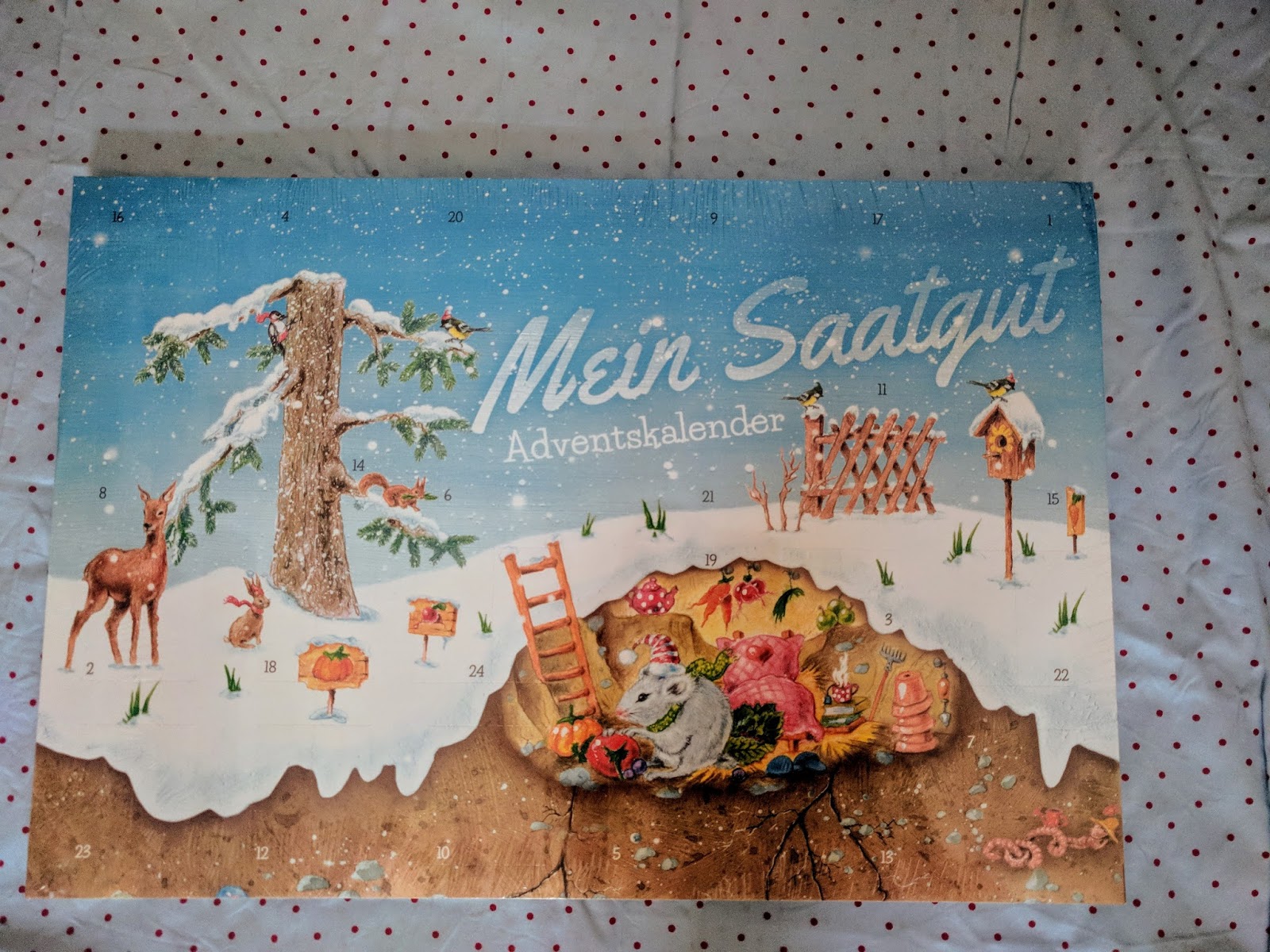 Etwas, das im doppelten Sinne Warten bedeutet habe ich auch noch gefunden. Einen Saatgut-Adventskalender! Es gibt ihn in zwei Varianten, „Bienenschmaus“ und „Garten“. Ich habe mich für letzteres entschieden, weil ich es schön finde, dass die Kinder lernen, wie das Gemüse was wir täglich essen aus kleinen Samen kommt. Während also zur Weihnachtszeit jeden Tag eine neue Samensorte entdeckt wird, könnt ihr die später gemeinsam mit euren Kindern einpflanzen. Im Frühjahr, Sommer und Herbst erntet ihr dann die Früchte eurer Arbeit. Finde ich toll, weil es eben auch Natur für Kinder begreifbar macht. Im Kalender findet ihr neben Markerbsen, Paprika oder Schnittlauch auch eher unbekannte Sachen wie Inkapflaume, Mangold oder Rote Rüben. Ich bin auf jeden Fall auf das neue Erntejahr gespannt.