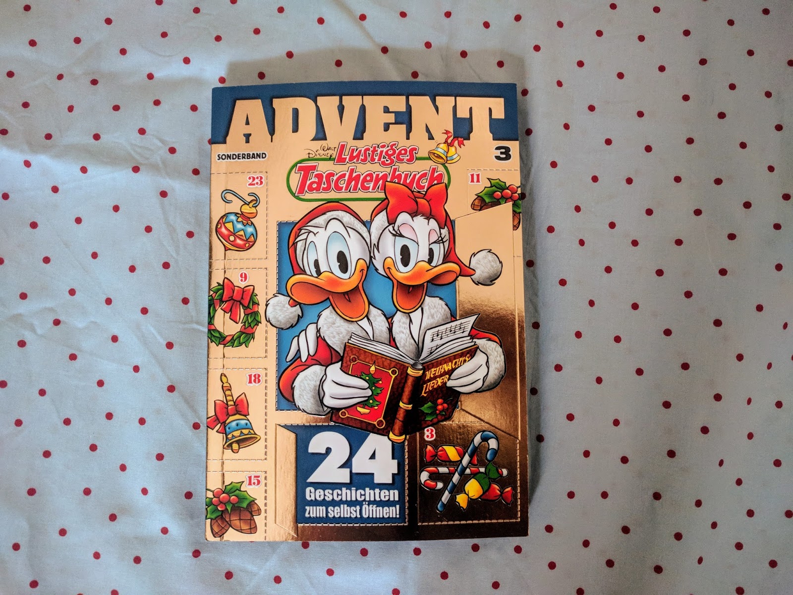 So, wo wir schon bei Kindheitserinnerungen sind. Ich LIEBE das Lustige Taschenbuch. Früher habe ich mir das immer aus der Bibliothek ausgeliehen. Dann habe ich sogar vor Jahren mal in der Redaktion dort gearbeitet. Und ja, da wanderte dann das ein oder andere LTB auch zu mir nach Hause. Da lebt es immernoch, denn irgendwann werden die Kinder ja im richtigen Alter dafür sein. Die Geschichten sind dann immernoch schön. Der Adventskalender vom Lustigen Taschenbuch kann, das gebe ich zu, nur einmal geöffnet werden. Aber deswegen können eure Kinder in den nächsten Jahren trotzdem immer wieder die Geschichten lesen. Ist ja nicht so, als würde sich irgendjemand die ein Jahr lang merken.