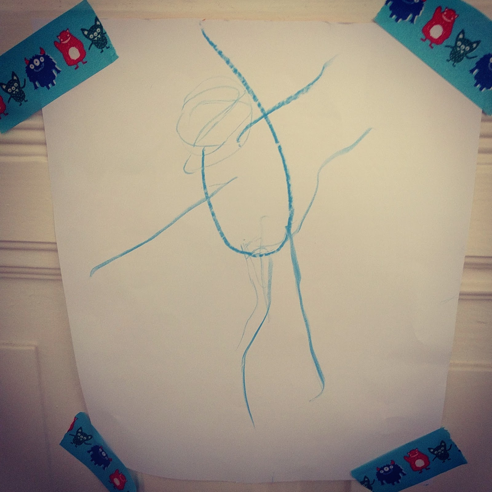 Freitag herrscht Chaos bei uns. Das Runzelfüßchen will malen und räumt dafür großflächig alles voll. Sie wünscht sich, dass ihre gemalte Puppe dann von mir genäht wird, Ich rechne wie immer mit einm paar Strichen und bereite mich schon darauf vor, ihr dann zu erlären, dass das so nicht geht.