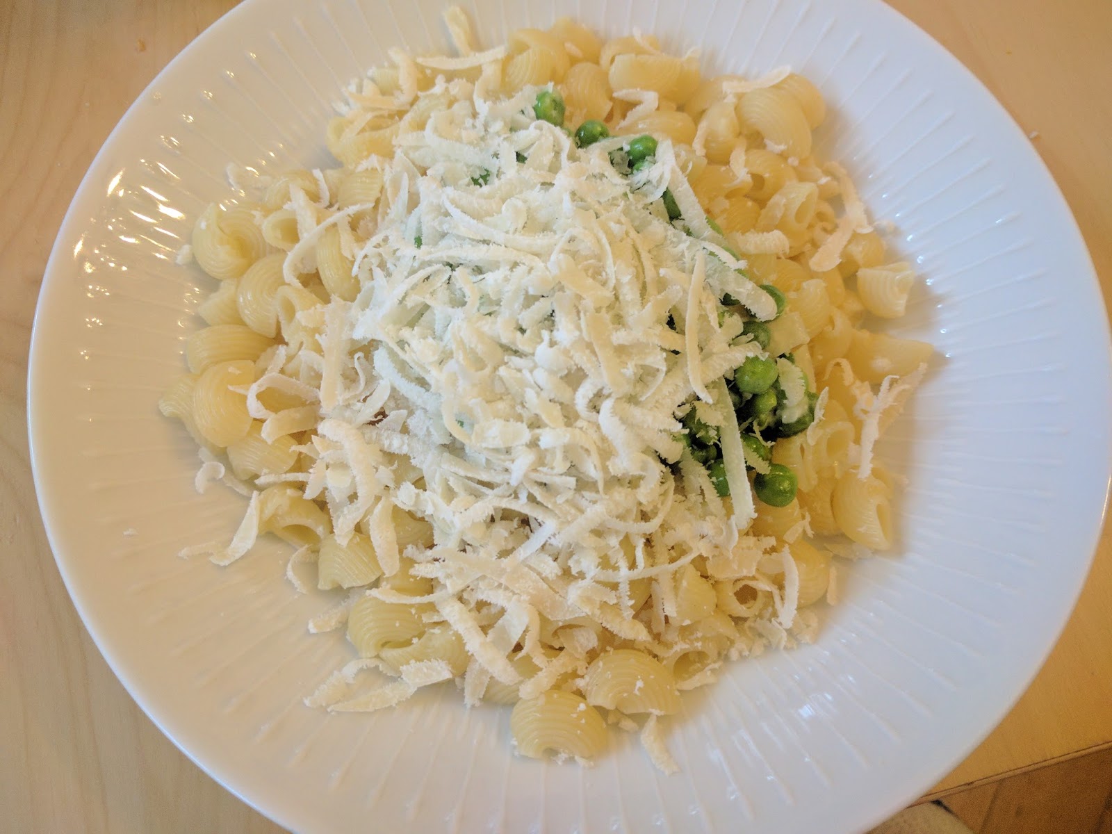 Ein schnelles Abendessen, das vor allem Herr Annika total verschlingt. Nudeln in Erbsensahnesoße. In meiner Version mit extra viel Parmesan.