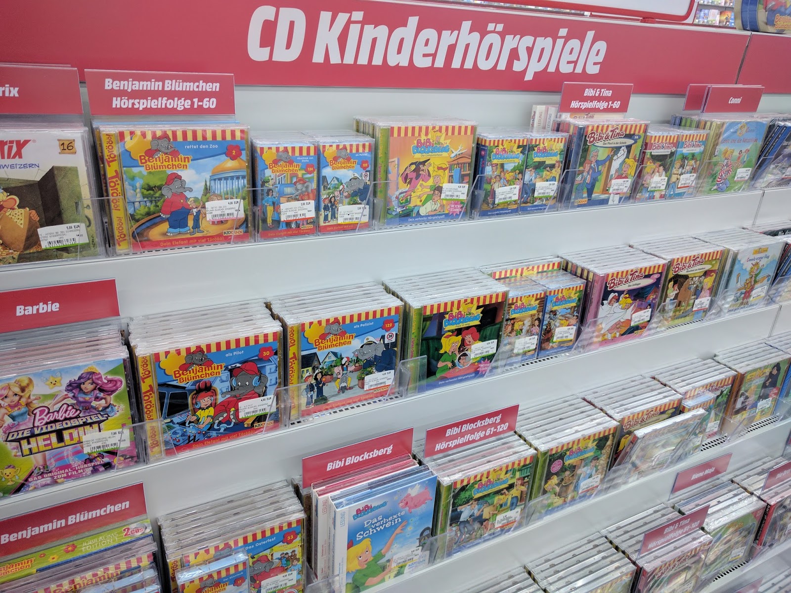 Eigentlich wollten wir dann wieder nach Hause, aber irgendwie habe ich mir in den Kopf gesetzt ein neues Waffeleisen zu kaufen. Wir klappern also diverse Elektromärkte ab und mir wird mal wieder klar, wieso ich auf Einkaufen so gar keine Lust habe. Es ist total voll und von überall plärrt die Musik. Das Runzelfüßchen lässt sich bei den Hörspielen inspirieren und ich möchte beinahe sofort fliehen, denn das Gedudel da, das ist zum Wegrennen. Es ist FURCHTBAR!
