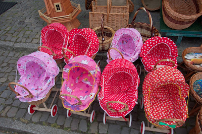 Lübbenau ist natürlich schon ein wenig touristisch, aber eigentlich noch sehr angenehm. Uns fiel ein kleines Geschäft mit Korbwaren auf, bei denen es tatsächlich so tolle Puppenwagen gab. Leider hat das Runzelfüßchen schon einen Puppenbuggy, aber weil die hier nicht sooo teuer waren, wollte ich beinahe einen kaufen.