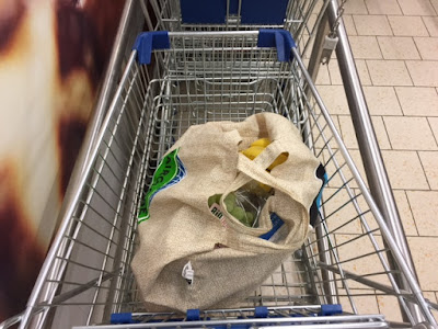 Kaufe ich gerne ein? Nein. Aber diesmal musste ich alleine mit Herrn Annika einkaufen gehen. Das Runzelfüßchen wollte lieber zu Hause bleiben. Herr Annika wollte aber mit und war gut gelaunt. Er wollte allerdings jedes einzelne Gut in den Wagen packen. Und natürlich später wieder aufs Einkaufsband. Dass die Sachen schwer, zerbrechlich oder beides waren, störte ihn wenig.