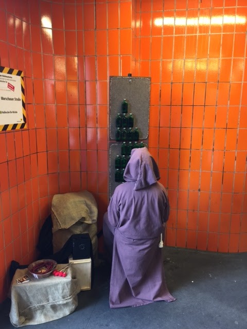 Wir waren zu dritt unterwegs zur Bibliothek, da wir fast wieder dabei waren, unseren Rückgabetermin zu verpassen. Irgendwie mag ich ja U-Bahn fahren, aber weniger die U-Bahn-Musiker. Auf diesem Bild sieht man eine Ausnahme: eine Frau, kein Mönch, spielte auf kleinen Schnapsflaschen, die mit Wasser gefüllt sind, Musik. Die Kinder waren hin und weg. In der Bibliothenk liehen wir uns mehr aus als ich beinahe tragen konnte.