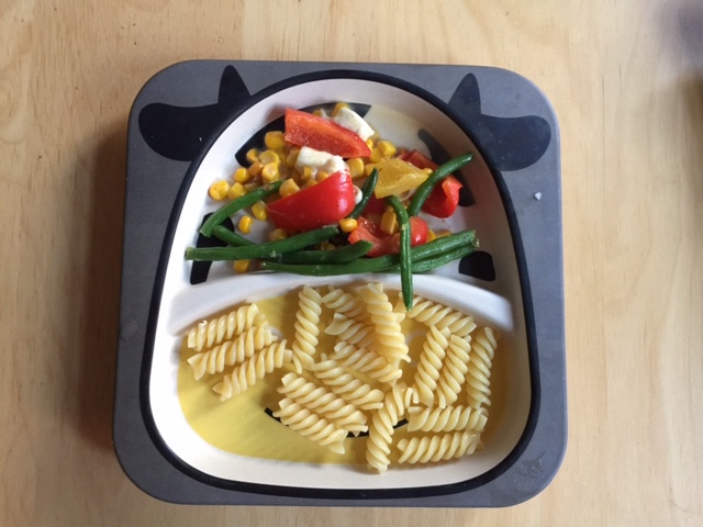 Zum Abendessen gab es eine bunte Konfetti-Gemüsepfanne mit Nudeln als Beilage. Wenn ihr jetzt denkt, dass wäre mein Teller gewesen, dann irrt ihr. Mein Sohn hatte diesen Teller und noch einen Nachschlag ratzfatz aufgegessen.