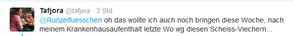 Tafjora bloggt dieser Tage über ihre Erfahrungen und wird ihren Notfallkoffer zeigen. Denn sie landete nach einem Wespenstich im Krankenhaus.