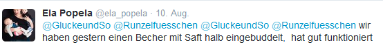 Tollabea ist etwas rabiater bei der Wespenvertreibung. Sie schlägt mit einer elektischen Fliegenklatsche um sich. Und ist damit nicht allein. Auch zwei weitere Twitterinnen waren von diesem Gerät angetan. Das mag Abzug bei den Karmapunkten geben, aber dafür wird man nicht gestochen. Für Kinder ist das natürlich nicht so zu empfehlen.