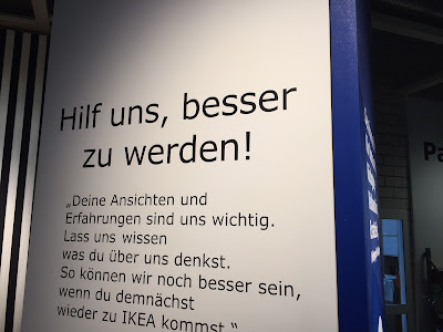 Schon weil das Kind so von der Rolle ist machen wir bei Ikea ganz in Ruhe. Herr Annika meldet Huger und so suche ich zum ersten Mal die Stillmöglichkeiten im Einrichtungshaus auf. Ich sag mal so: Neben den zwei sehr stark frequentierten Wickelkommoden zu stillen empfinde ich als sehr unangenehm. Neben dem olfaktorischen Faktor (ja, das riecht da streng) kommt hinzu, dass es irgendwie auch unbequem ist. Zukünftig mache ich das also lieber da, wo ich gerade bin und nicht heimlich in der letzten Ecke.