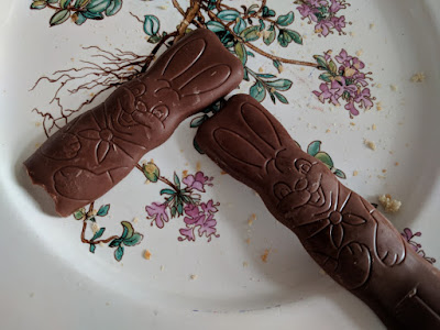 Denn Herr Annika hat sich eine Klettervorrichtung gebaut mit der er nicht nur zwei Lakritzstückchen ergaunert hat, sondern auch zwei Schokohasen entkleidet. Und in einen, ihr seht es, hat er auch schon reingebissen. Das Runzelfüßchen „befreit“ ihn davon und mit schokoverschmiertem Mund will sich mein Sohn nun bei mir beschweren. Ich gebe aber meiner Tochter recht und am Ende gibt er sich damit zufrieden, dass er ja seine Spaß und immerhin zwei Lakritztiere hatte.