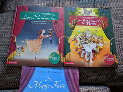 Wir schaffen es endlich die Post bei den Nachbarn abzuholen. Eine Freundin hat uns drei Kinderbücher mit berühmten Opern geschickt. Diese Bücher sind zum Lesen und Hören, denn es liegt jedem Buch eine CD bei. Herr Annika blättert darin herum und erfreut sich an den Bildern, meine Tochter aber wartet darauf, dass der Mittagsschlaf ihres Bruders nur schnell beginnt. Sie will den Nussknacker hören und zwar allein. Seit dem „Hör mal… Mozart“- Buch von Carlsen ist sie wirklich angefixt von klassischer Musik. Während ich auf dem Sofa döse vertieft sie sich in die Musik, als ich erwache beobachte ich, wie sie dazu tanzt. Das ist so so schön, dass ich beschließe, dass wir demnächst wirklich mal in eine Kinderoper gehen werden.