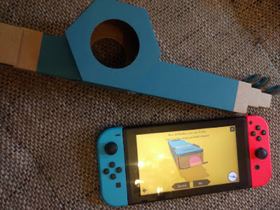Meine Tochter bastelt in der Zwischenzeit. Sie will die Angel aus dem Nintendo Lab basteln. Offensichtlich braucht man dafür auch die Spielkonsole. Eine interessante Abwechslung vom Basteln mit Büchern oder der reinen Phantasie. Sie findet es super und kann erstaunlich viel allein machen. Allerdings schaffen wir die Angel dann doch nicht an einem Nachmittag. Irgendwann reicht die Konzentration nicht mehr.