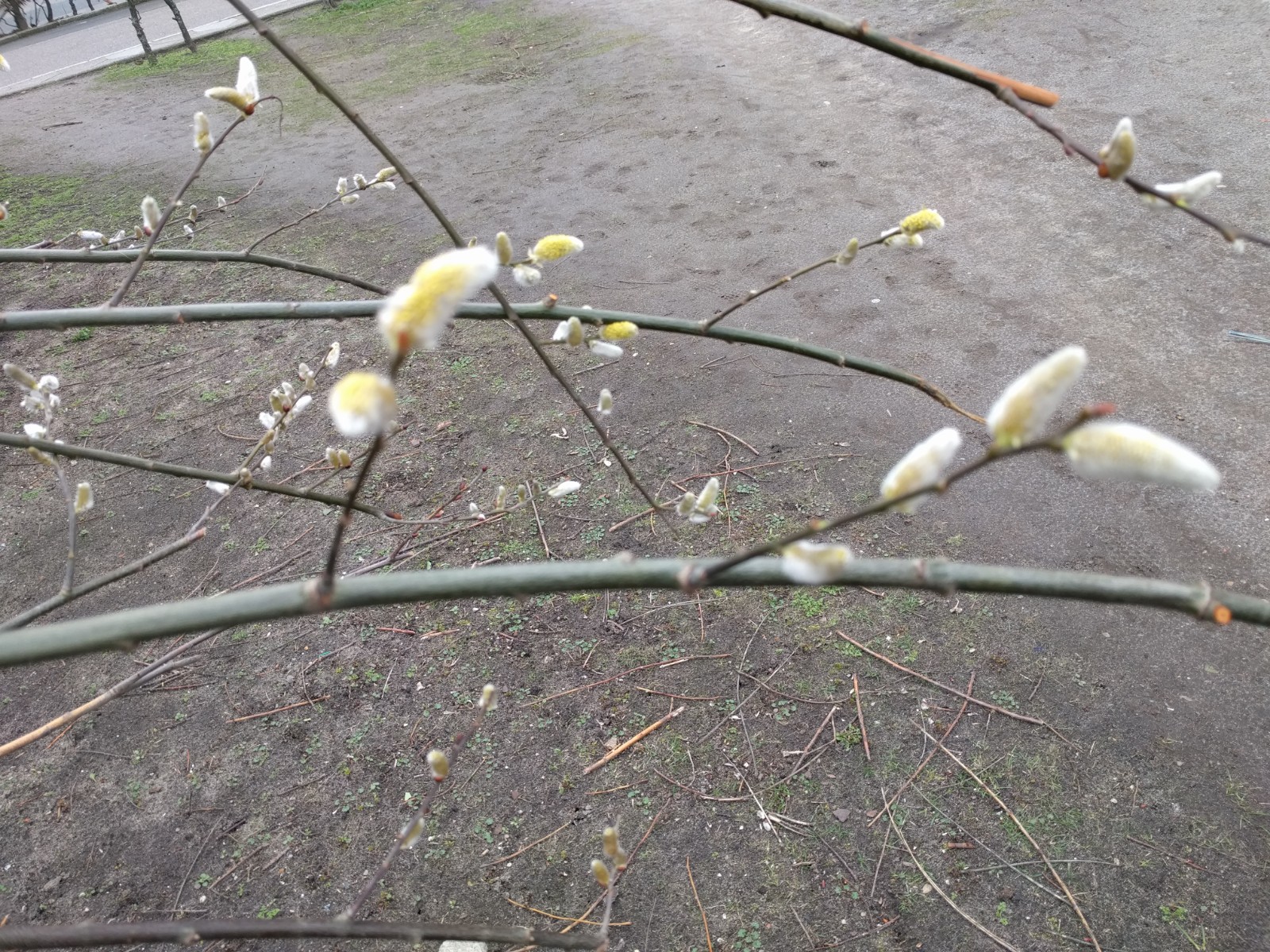 Auf dem Weg zur Bibiliothek sehen wir Palmkätzchen. Ich hatte gelesen, dass diese die erste Nahrung für die Bienen nach dem Winter sind, und deswegen niemand die abreißen soll. Das hatte ich den Kindern erzählt, die nun stehen bleiben und das Bienenfutter ausführlich bewundern.