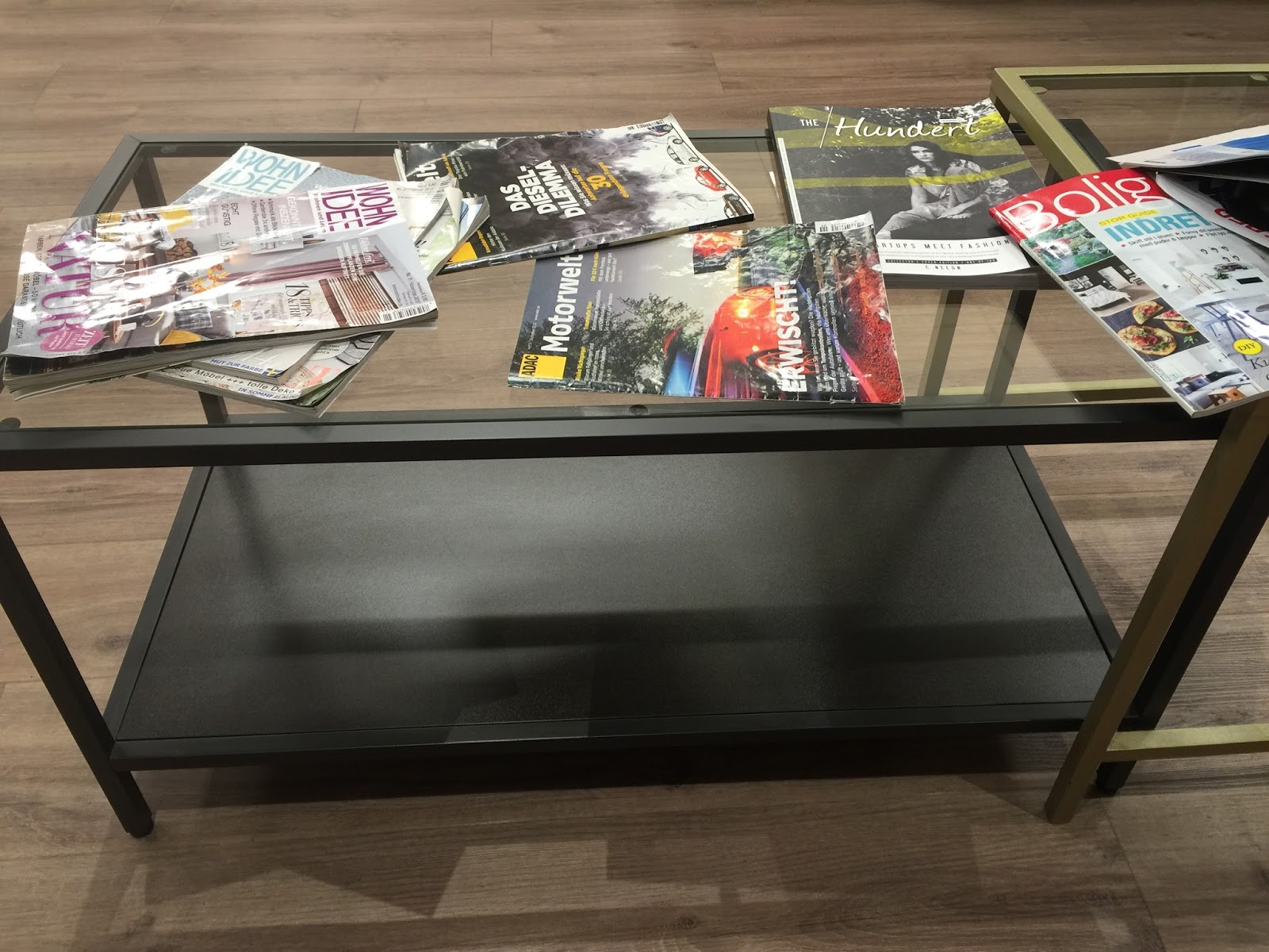 Der Mann wartete in der „Männerecke“ des Ladens (und zwang mich, dieses Foto davon zu veröffentlichen) das Runzelfüßchen nutzte die Spielküche und schloß Freundschaft mit zwei anderen Kindern.