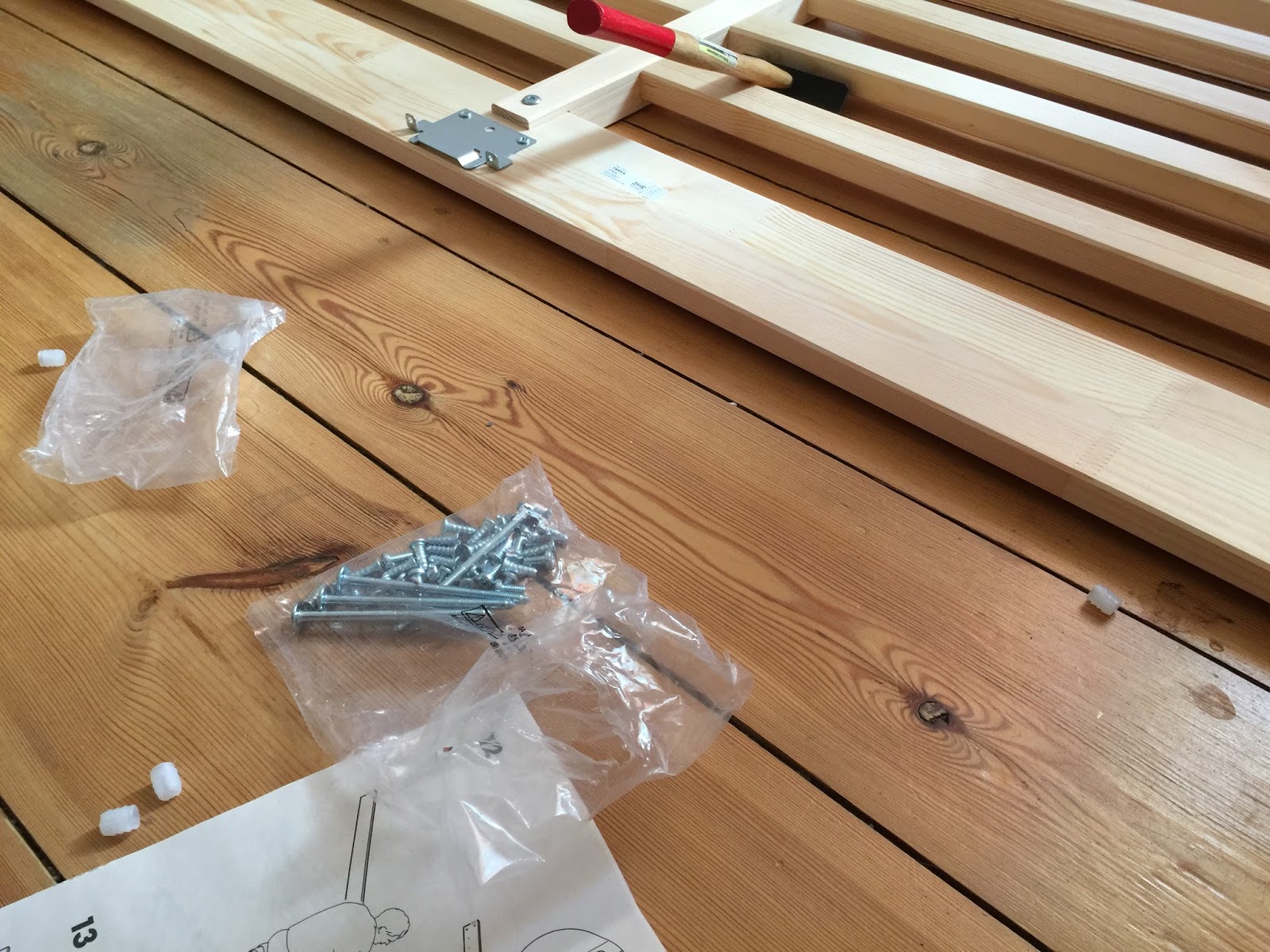 Während ich arbeite gibt mein Mann alles beim Aufbau des Familienbettes. Und ich gestehe an dieser Stelle: Ich hab das total unterschätzt. Ich dachte, er schraubt da ein zwei Stunden, dann ist alles fertig und er kann mit den Kindern auf den Spielplatz gehen. Stattdessen maulen die Kinder, dass die Sonne scheint und es so laaaangweilig sei und sie raus wollen. Weil es sich nicht ändern lässt ist das Runzelfüßchen sogar bereit das Waschbecken im Bad zu putzen und ist sehr zufrieden mit sich. Herr Annika versucht zur selben Zeit meinen Mann zu sabortieren und steckt Schrauben ins Bett, die er dann mühevoll wieder rausfrimeln muss. Es ist nicht leicht für die Kinder, weil die Sonne einfach zu verführerisch lacht.
