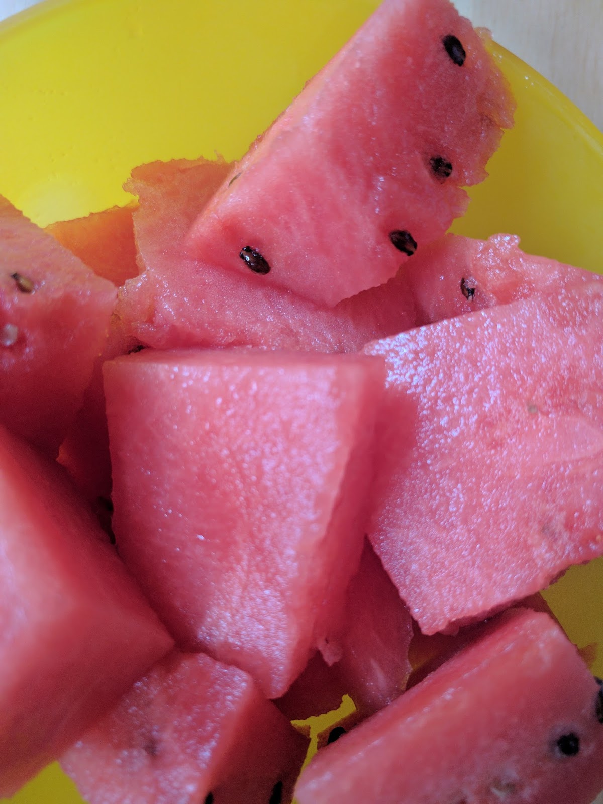 Der Tag startet irgendwie nicht so toll. Weil die Nacht so furchtbar war. Mein Mann war mit Freunden aus, Herr Annika  hat ihn die ganze Nacht gesucht. Und sich dabei natürlich nicht still verhalten sondern seinem Frust, dass er ohne Papa schlafen muss, laut kund getan. Ich bin sehr gerädert am Morgen. Weil wir aber vereinbart hatten. dass ich mich um die Kinder kümmere, damit Alex ausschlafen kann stehe ich also vollkommen zerknautscht auf. Um 7:18Uhr, viel zu früh. Die Kinder wollen essen, bevor wir zum Bäcker gehen. Zum Glück kullern noch 5 Kilo Melone rum, die dieses Wochenende mal verschwinden soll.