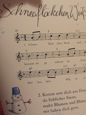 Weihnachten ist schon vorbei, aber bestimmte Weihnachtsbücher werden noch immer irgendwie gefunden. Herr Annika blätterte durch ein Buch und irgendwo tauchten Noten auf. Noten bedeuten bei ihm, dass ich(!) singen muss. Also sang ich. Andrea meinte, meine Version hätte nicht mehr viel mit dem Orignal zu tun gebabt. Mein Sohn fand hingegen meine Interpretation sehr toll und zwang mich, immer wieder zu singen.