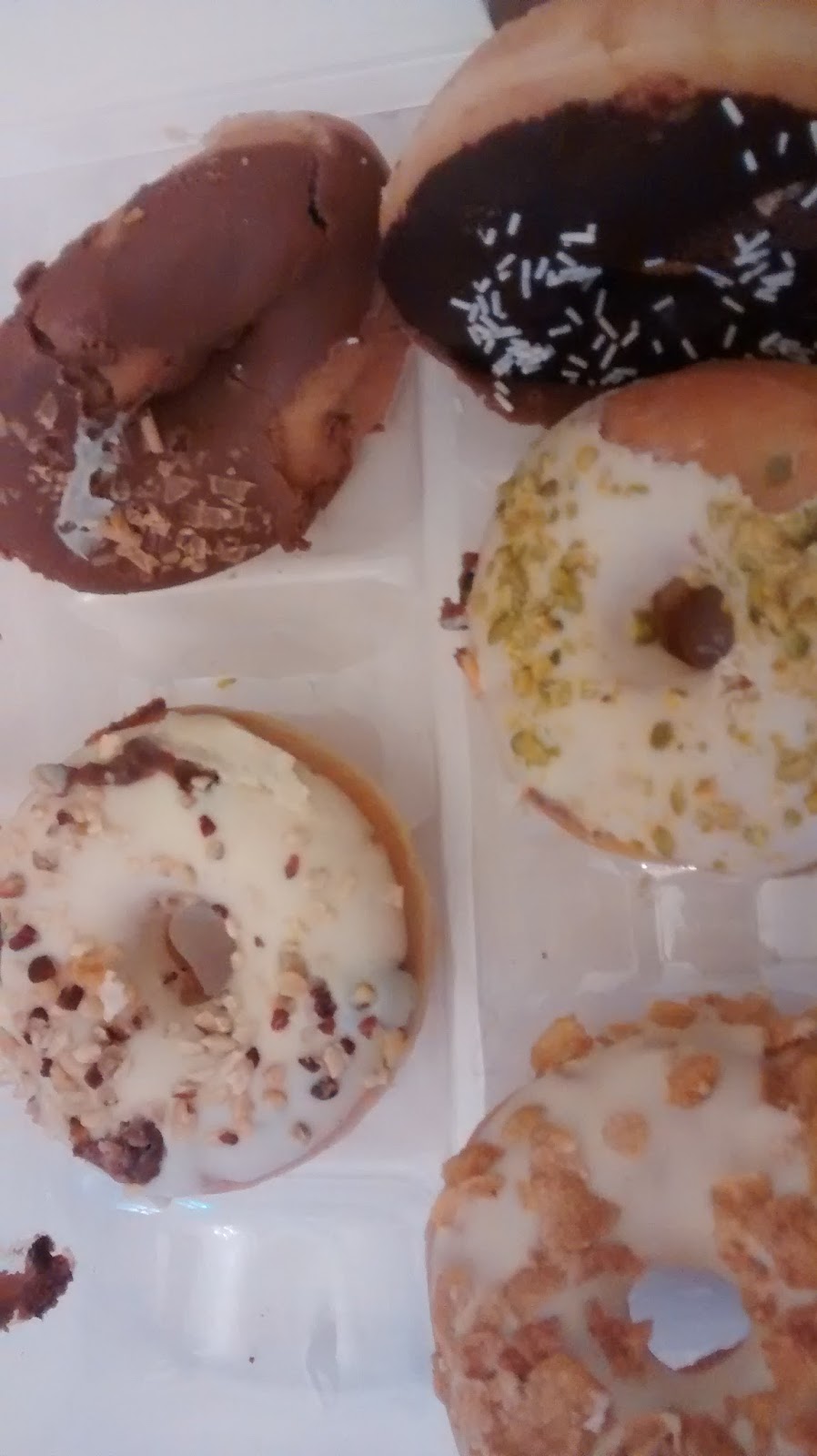 Am Abend lassen der Mann und ich es krachen und essen Donuts. Er guckt Fußball und ich verzweifel an meiner neuen Nähmaschine. Die macht nämlich eigentlich nichts.