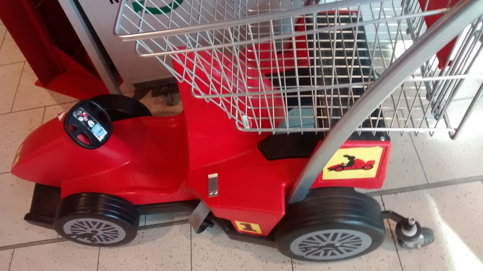 Dann hieß es: Einkaufen! Natürlich nicht mit dem Standardeinkaufswagen, das wäre ja langweilig gewesen. Das Runzelfüßchen kommt mit der Zeitumstellung nicht wirklich zurecht, deswegen ist alles ab 11.00Uhr zur Zeit einfach nur richtig doof. So dann auch das Einkaufen. Irgendwann konnte es auch das Auto nicht mehr retten.