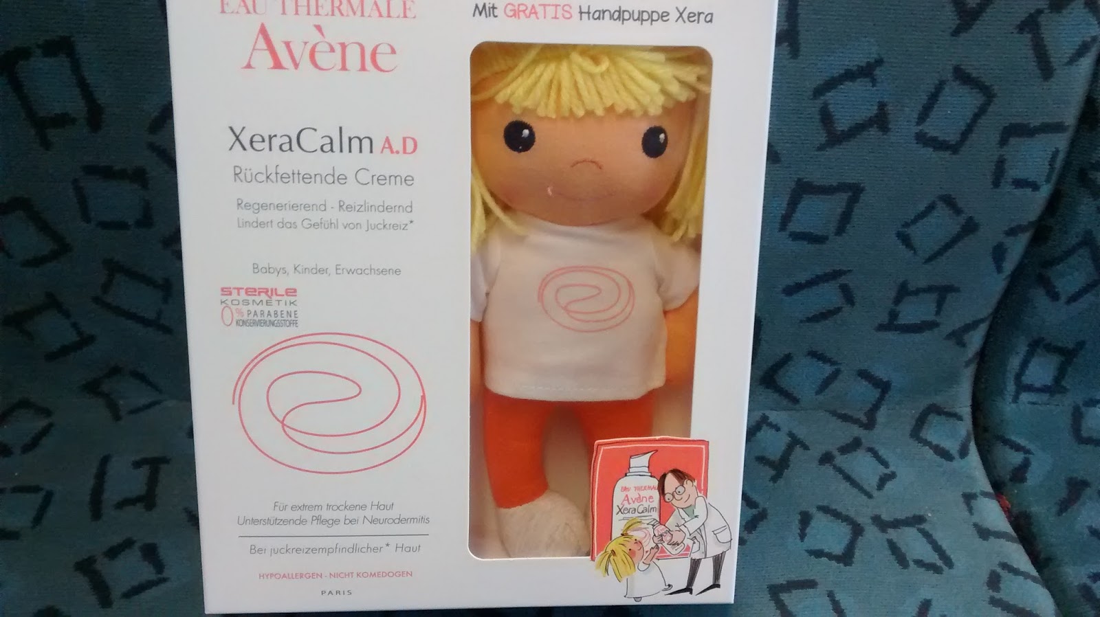 Wir gehen aber noch zur Apotheke und der sehr freundliche Mann empfiehlt uns eine Creme, mit der das Runzelfüßchen vielleicht wenigstens keinen Juckreiz mehr verspürt. Sie ist schwer begeistert, auch, weil es im Set dazu eine kleine Puppe gibt.