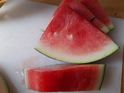 Zur allgemeinen Erbauung gibt es erstmal Melone. Also für alle, außer mich. Tatsächlich ist es so, dass ich oft nichts essen kann wenn ich Stress habe. Die Melone geht aber auch ohne mein Zutun gut weg.