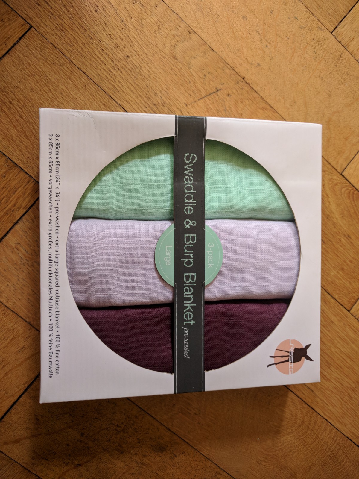 Beim Räumen finde ich ein Geschenk von Freunden, das irgendwie verschollen war. Das Baby (ok, und meine Klamotten) werden sich freuen.