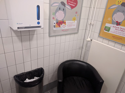 Dann fahren wir weiter. Wie so oft haben wir Windeln vergessen und müssen deswegen einkaufen. Und in einem Wickelraum in einer öffentlichen Toilette. Ich möchte mich beinahe übergeben, weil es so unfassbar stinkt. Und dann erblicke ich in der Ecke auch noch diesen Sitz, der sicher dazu gedacht ist hier zu stillen. An sich eine schöne Idee für all die Mütter, die einen Rückzugsort suchen. Aber bei dem ekelerregenden Geruch wird das wohl niemand in Anspruch nehmen.