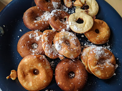 Herbstspaziergänge machen Hunger. Also mache ich Donuts für alle. Leider zu wenig, die Kinder essen schneller als wir gucken können. Auch das Glas Apfelmus ist überraschend schnell leer.