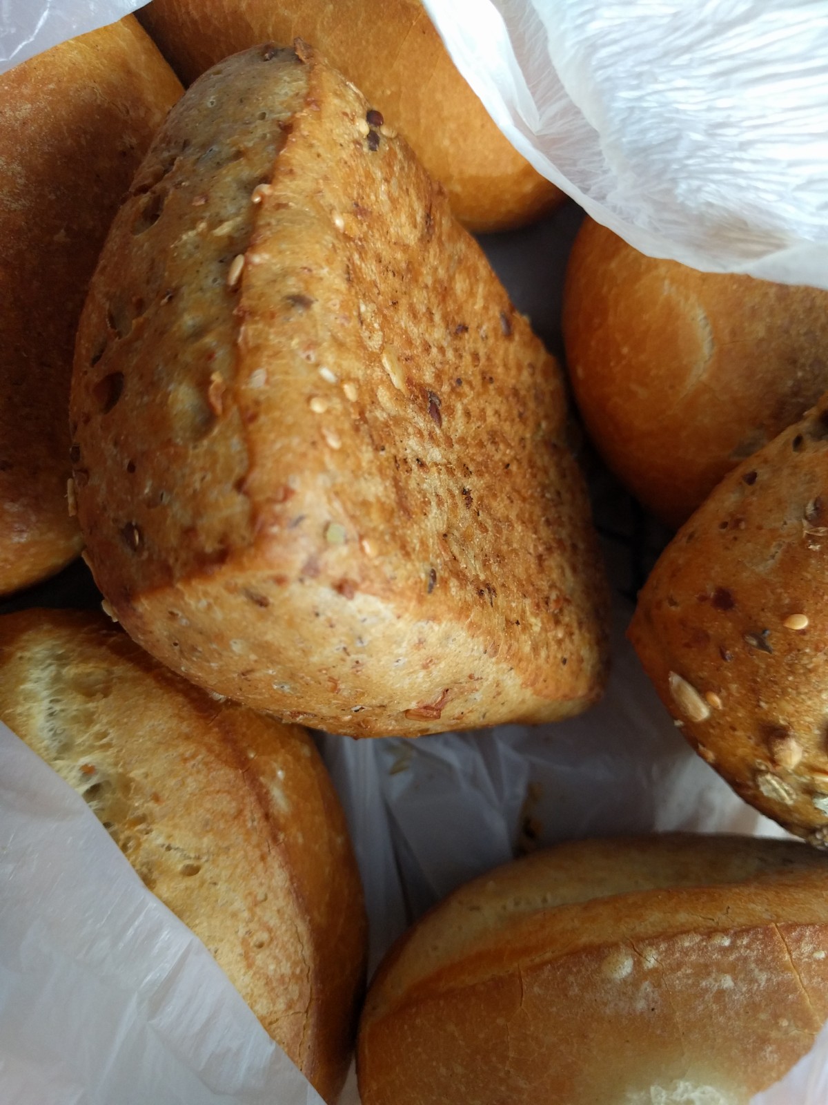 Wen es interessiert: Es gibt pro Erwachsenen ein normales und ein Mehrkornbrötchen, für die Kinder eben das Milchbrötchen und ein normales. Klingt viel, reicht bei uns trotzdem nicht.