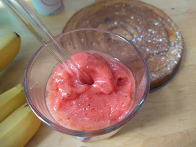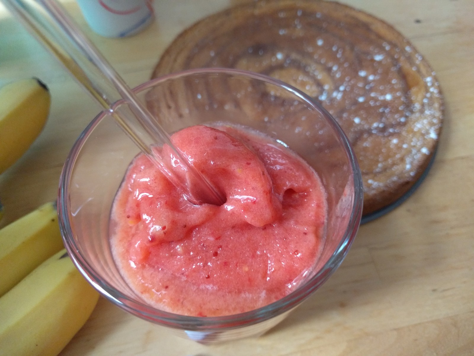 Unsere Küchenmaschine kann auch Smoothies. Das probiere ich aus. Die Glasstrohhalme waren ein Geschenk von Susanne zum Geburtstag und sie sind hier sehr viel im Einsatz.