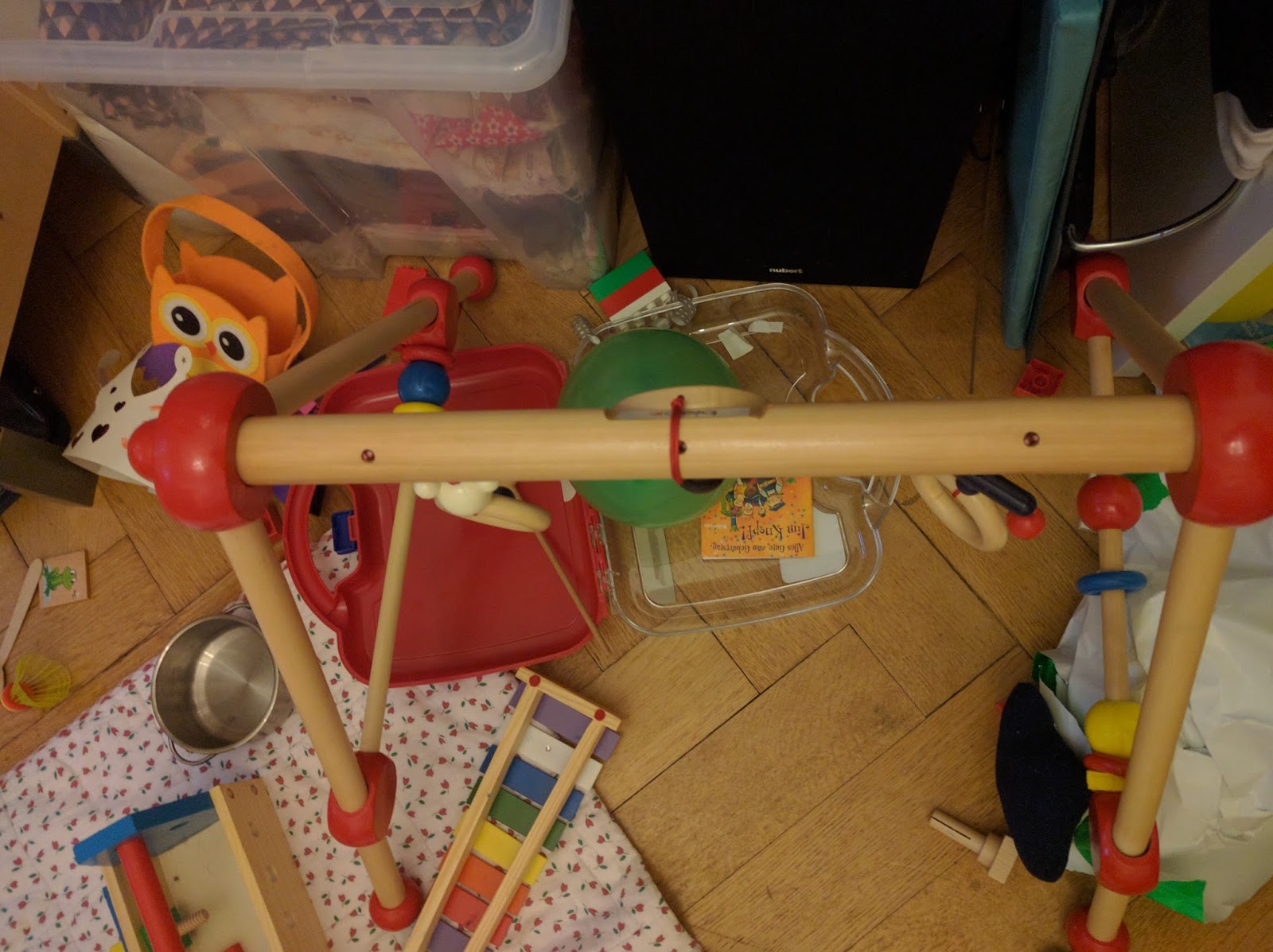 Neuer Tag, gleiches Bild. Wir feiern weiter. Zum gemütlichen Zusammensein kommen nun Freunde mit Kindern. Das ist in der Tat eine ganz andere Stimmung, eben, weil wir Eltern befreundet sind, nicht aber die Kinder. Es dauert daher etwas länger bis die miteinander spielen und warm werden. Nichts desto Trotz ist das Runzelfüßchen aber sehr aufgeregt, denn neben ihrem Bruder sind noch zwei weitere Babys anwesend. Sie küsst Babyberlin von Bella und streicht dem Babysohn von Susanne immer wieder über die Wangen. Sie erzählt mir auch ganz begeistert, dass der eben schon sitzen und sich hochziehen kann, während ihr Bruder sich mit Drehen begnügt. Ich merke, dass sie das sehr beschäftigt, was welches Baby denn alles kann.