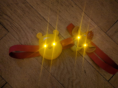 Am Freitag habe ich mich mit einer Freundin getroffen, die für die Kinder Zeitschriften mitbrachte. Und die Extras, diese in meinen Augen eher gruseligen Stirnlampen sind ein echtes Geschenk für die Kleinen. Sie sind begeistert und auch wenn ich denke: Ach, das brauchen wir doch nicht, es sind Kinder und die dürfen das auch mal haben.