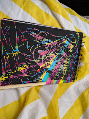 Die Laune im Auto sinkt wieder, es ist einfach langweilig. Ich reiche ein Kratzbildbuch nach hinten, was mir hübsch dekoriert zurückgereicht wird. Immerhin 10 Minuten Autofahrt rumbekommen…