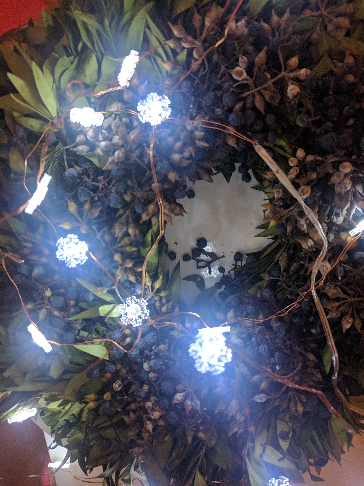 Wir zünden die zweite Adventskerze erst zum Abendbrot an, vorher ist zuviel Trubel. Solange beschäftigten sich die Kinder mit „ihrem“ Adventskranz, den sie selbst dekoriert haben.