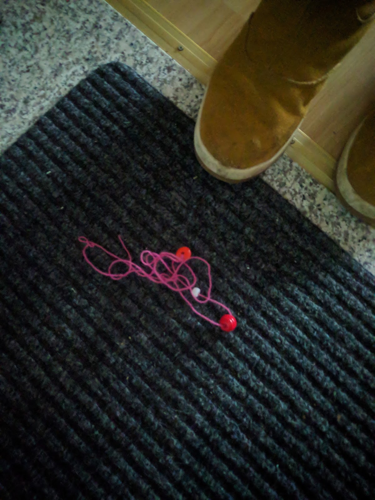 Die Kinder spielen Nikolaus. Als ich in meinen Stiefel schlüpfe finde ich diese selbstgebastelte Kette. Herr Annika strahlt mich begeistert an, so als wollte er sagen: „Ha, du hast sie ja entdeckt, Mama, schön, oder?“
