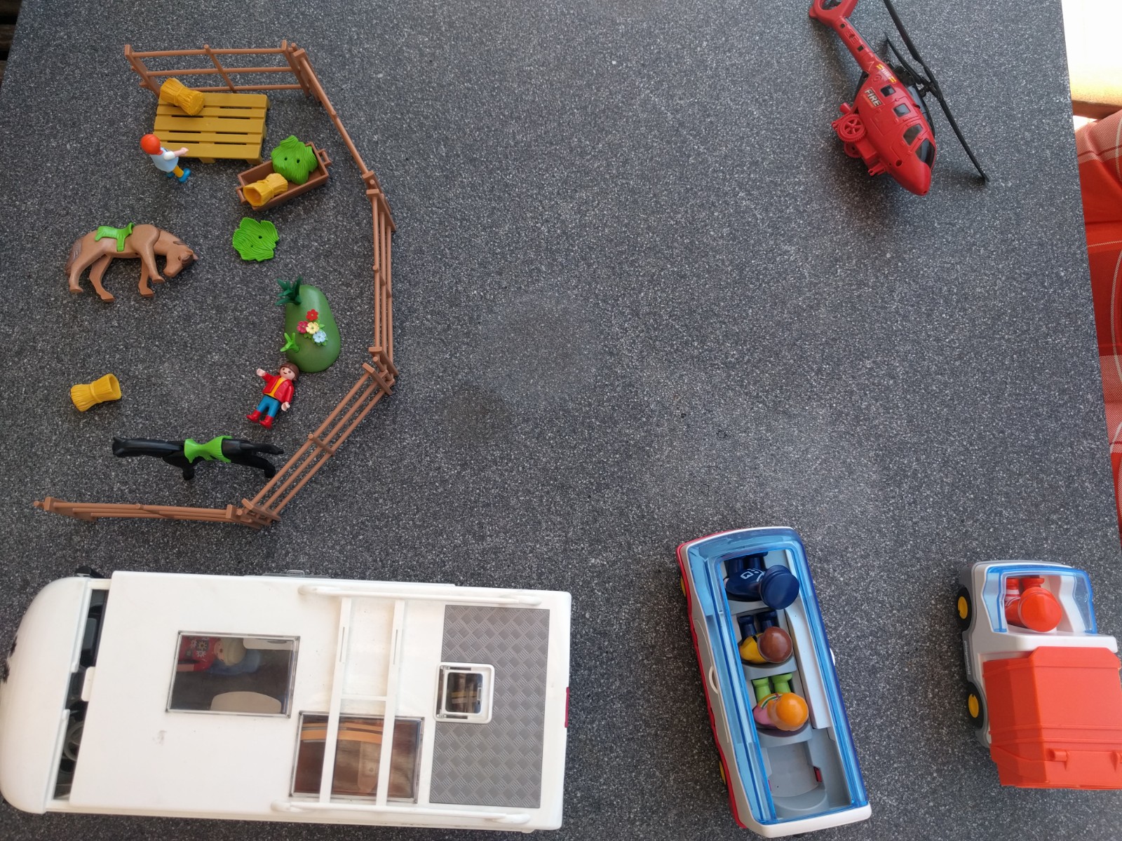 Das Runzelfüßchen hat sich das Pferdezeug gekauft, Herr Annika ein großes Wohnmobil. Bei beiden Dingen habe ich vollkommen bedenkenlos gesagt, klar, könnt ihr haben, weil ich davon ausging, dass es das Budget ja überschreiten würde. Aber nein, ganz ohne Handeln haben die Kinder nach dem Preis gefragt. Das Wohnmobil (um das uns mehrere Menschen auf dem Flohmarkt beneideten) kostete 3,50€, das Pferde-Playmobil 2,50€. Leider sind die Reiter_innen nicht die richtigen, da brauchen wir irgendwie größere Figuren. Die zwei, die dabei waren sind denke ich eher Beiwerk, sie „sitzen“ auf den Pferden nicht richtig. Aber hey, erstmal ist die Fünfjährige glücklich. Für ihren Bruder haben sie auch was gefunden. Das kleine Playmobil für die Jüngsten, einen Reisebus und ein Müllauto. War auch im Budget. Jetzt haben die Kinder zwar wesentlich mehr Geschenke bekommen als geplant, aber nun gut. Ich entscheide mich dieses Wochenende dafür die Feste zu feiern wie sie fallen (wo ich doch 20€ sinnlos für Anliegerparken bezahlen muss)