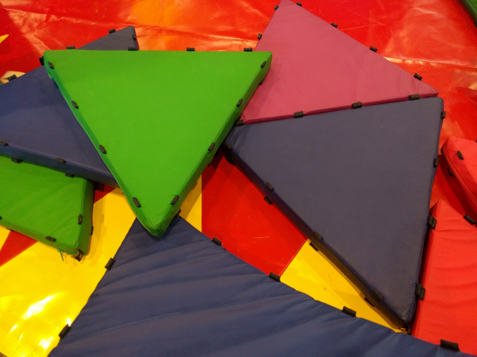 Wir gingen aufs Gelände und die Kinder fanden sofort etwas zum Basteln. Diese Dinger waren echt toll, Matten die mithilfe von Magneten zusammenhalten. Die Kinder wollten eine Höhle fürs Baby bauen, allerdings rissen andere anwesende Kinder ihnen immer die „Bausteine“ aus der Hand, so dass am Ende eher Frust blieb.