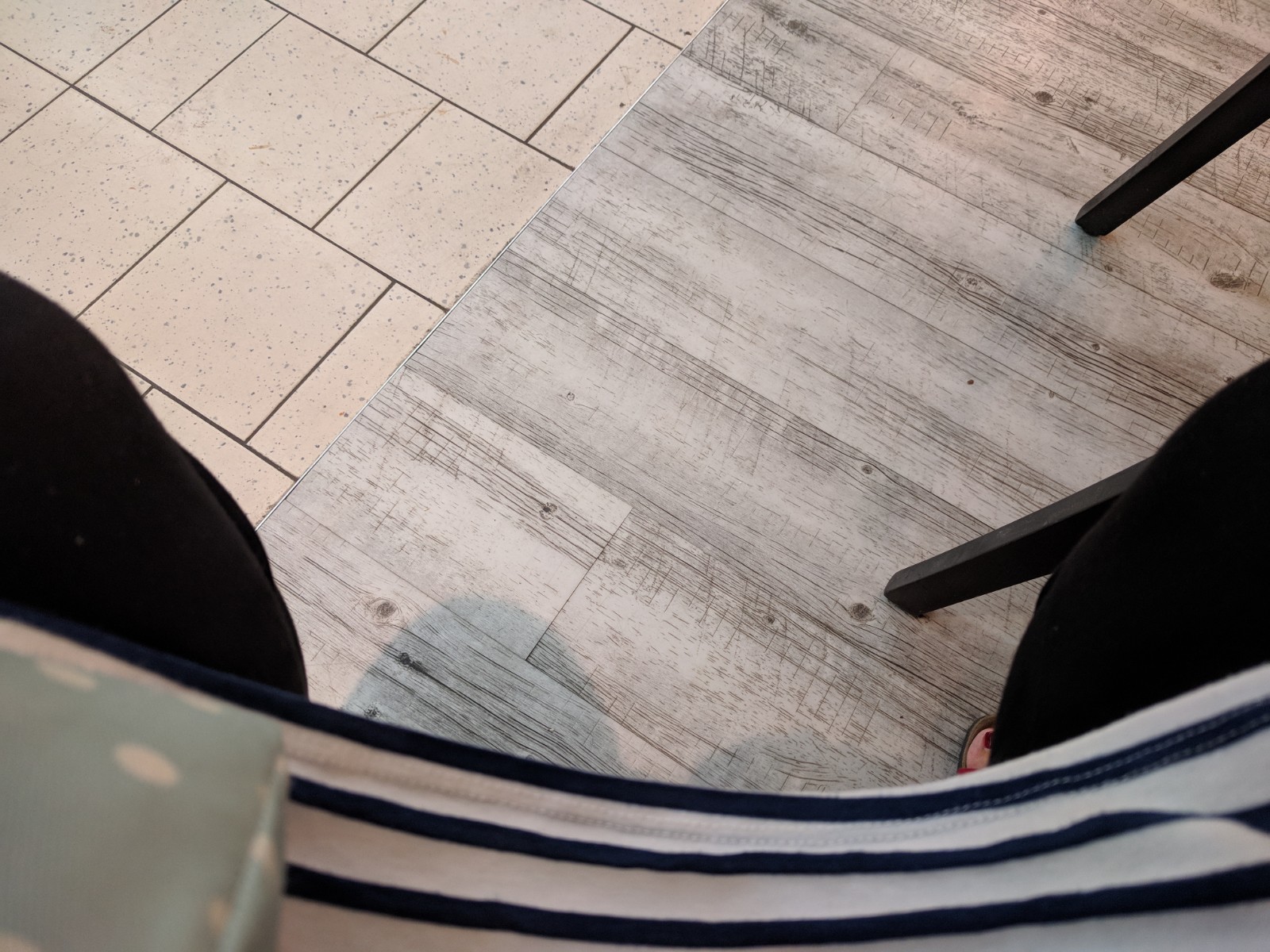 Ausruhen biem Wochenendeinkauf. Ich fühle mich nicht so gut, bin krank und bekomme ganz ganz schlecht Luft. Da bin ich dankbar, dass ich einen Stuhl finde, während meine Familie alles einkauft und einpackt.
