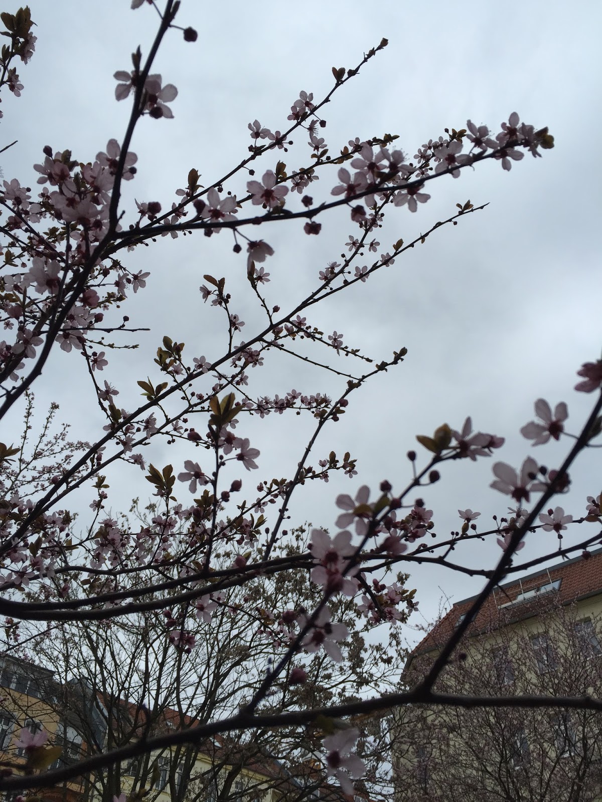 Danach geht es noch eine Runde auf den Spielplatz. Wo mittlerweile die Kirschblüten blühen.