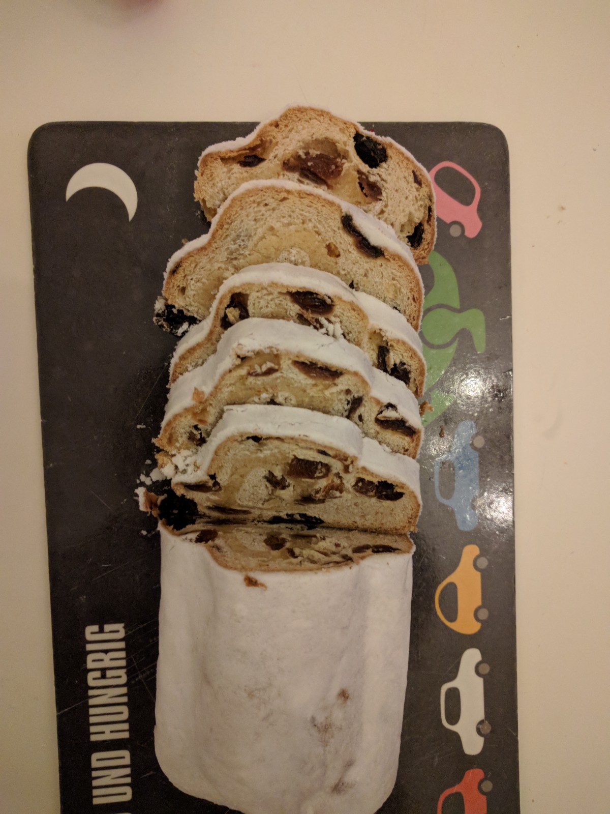 Eigentlich wollten die Kinder mit Freunden Plätzchen backen. Stattdessen gibt es Ministollen und unsere Plätzchen von letzter Woche für alle. Ich habe nicht die Nerven für mehr menschlichen Kontakt als den in meiner Familie und erkläre das auch genau so den Kindern.