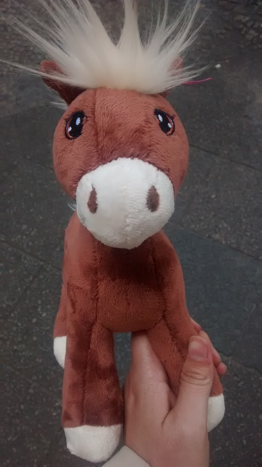 Nachmittags gehts auf den Spielplatz. Mit dabei: Das Pferd, für das sich das Runzelfüßchen im Spielzeugladen entschieden hat.
