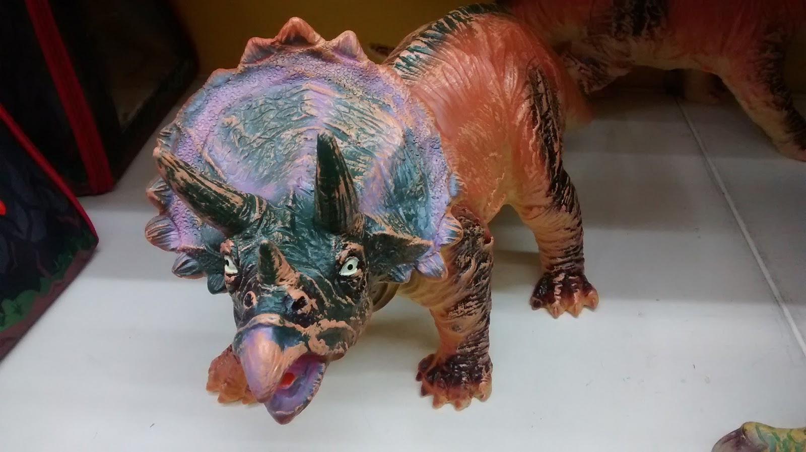Der Deal war, dass das Runzelfüßchen sich im Laden etwas aussuchen darf. Hm ja, gute Idee… Wer jemals mit einer Anderthalbjährigen in einem Spielzeugladen weiß Bescheid wovon ich rede. Sie wollte zunächst diesen gruseligen Dino. Und drei Sekunden später eine Puppe. Und vier Sekunden später einen Staubsauger…