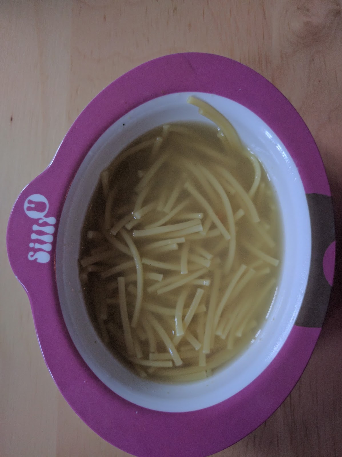 Eigentlich war als Abendessen ja Risotto geplant, aber auf dem Rückweg, im Car Sharing Auto, denn laufen konnte das Kind ja nicht, meint das Runzelfüßchen: „Mama, ich will Suppe, ich habe Bauchweh.“ Also gibt es Suppe.